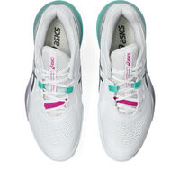 Styled in a clean White base with striking Aurora Green accents, this performance shoe combines tour-level functionality with modern court-ready looks.