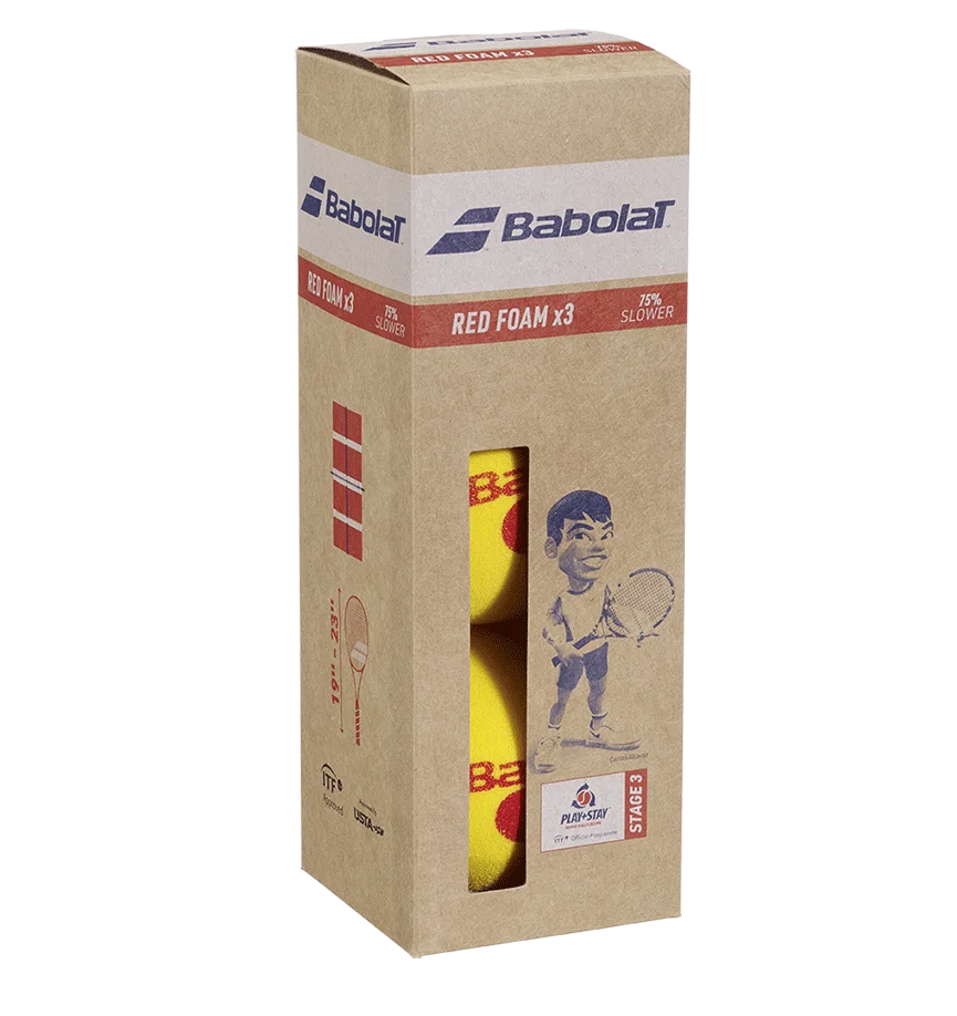 The Babolat Red Foam Stage 3 balls are designed for young beginners and first-time players. Made from soft foam for maximum safety and control, these balls bounce lower and move slower than standard tennis balls — giving players more time to react and rally with confidence.