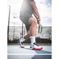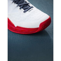 Underfoot, a triple EVA midsole construction delivers premium comfort and responsiveness. DynaFoam in the heel absorbs shock during hard landings, responsive EVA in the forefoot keeps you fast off the mark, and a softer EVA zone through the midfoot and toe area provides all-match comfort during long baseline exchanges.