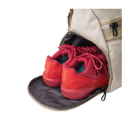 The interior lining is made from 100% recycled polyester, reflecting a commitment to sustainability without compromising durability or performance. Its structured main compartment provides ample space for apparel, shoes, and accessories, while the streamlined Boston-style shape makes it easy to carry on and off the court.