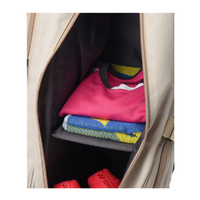 Lined with 100% recycled polyester, the interior reflects a strong commitment to sustainability without sacrificing durability or performance. The thoughtfully designed compartments allow for easy organisation of racquets, apparel, shoes, and accessories, keeping everything protected and accessible on the go.